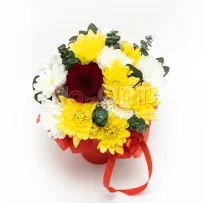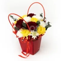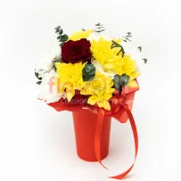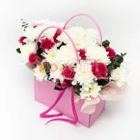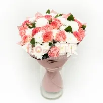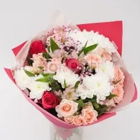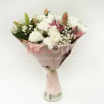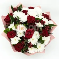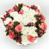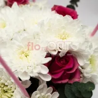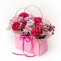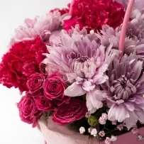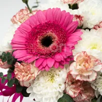 Композиция № 210 с розовой гвоздикой и хризантемой