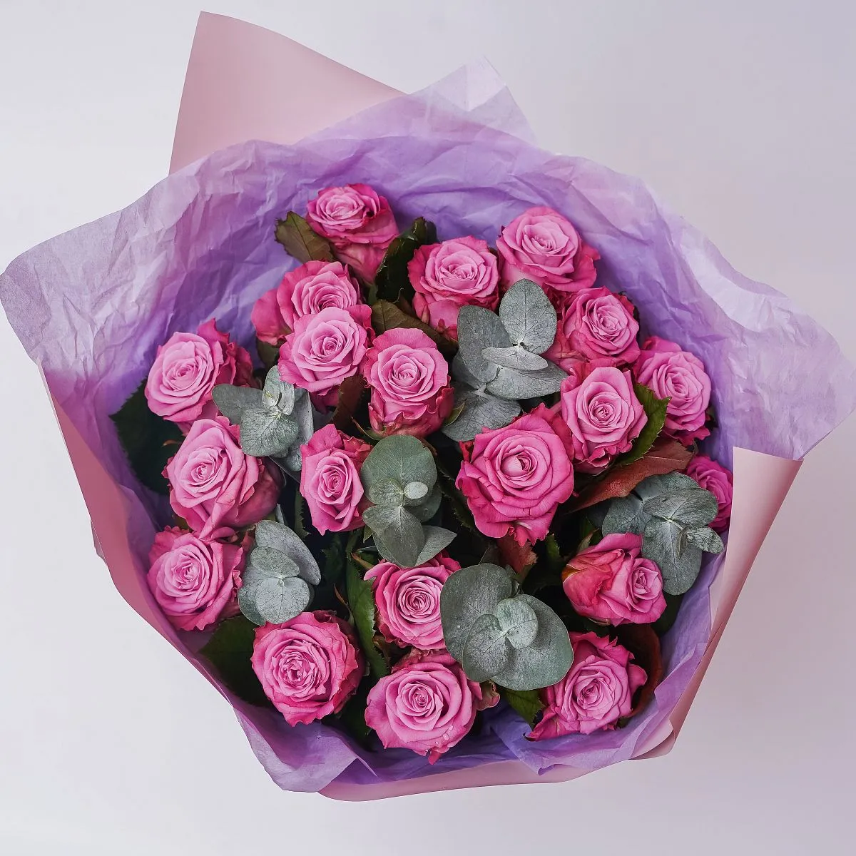 Цветы в составе Пленка матовая 320 руб, Рафия , Эвкалипт Де Люкс, Роза Россия 60 см , Бумага Тишью, Расходный материал, ✓ Все цветы в наличии