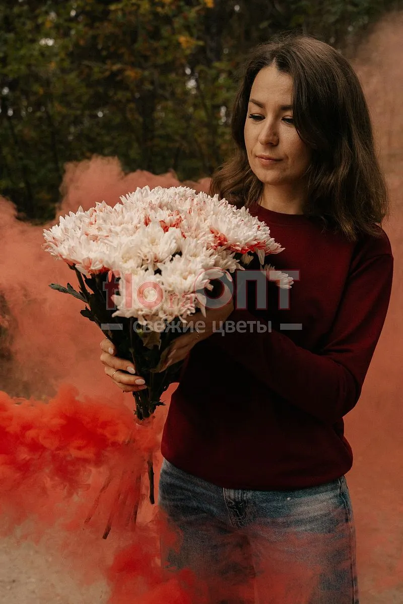 • Букет № 550 из красных крашеных хризантем — фото 10