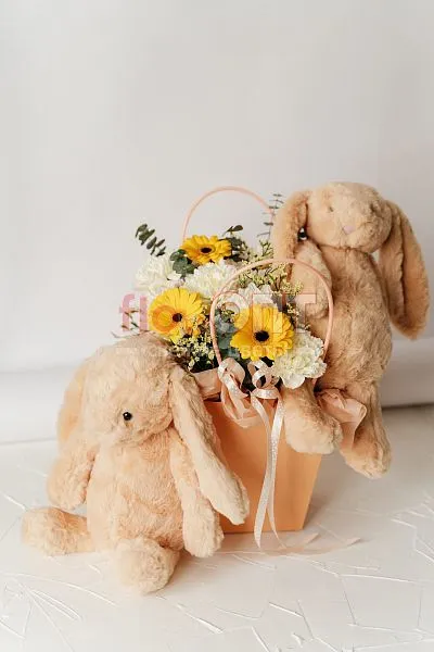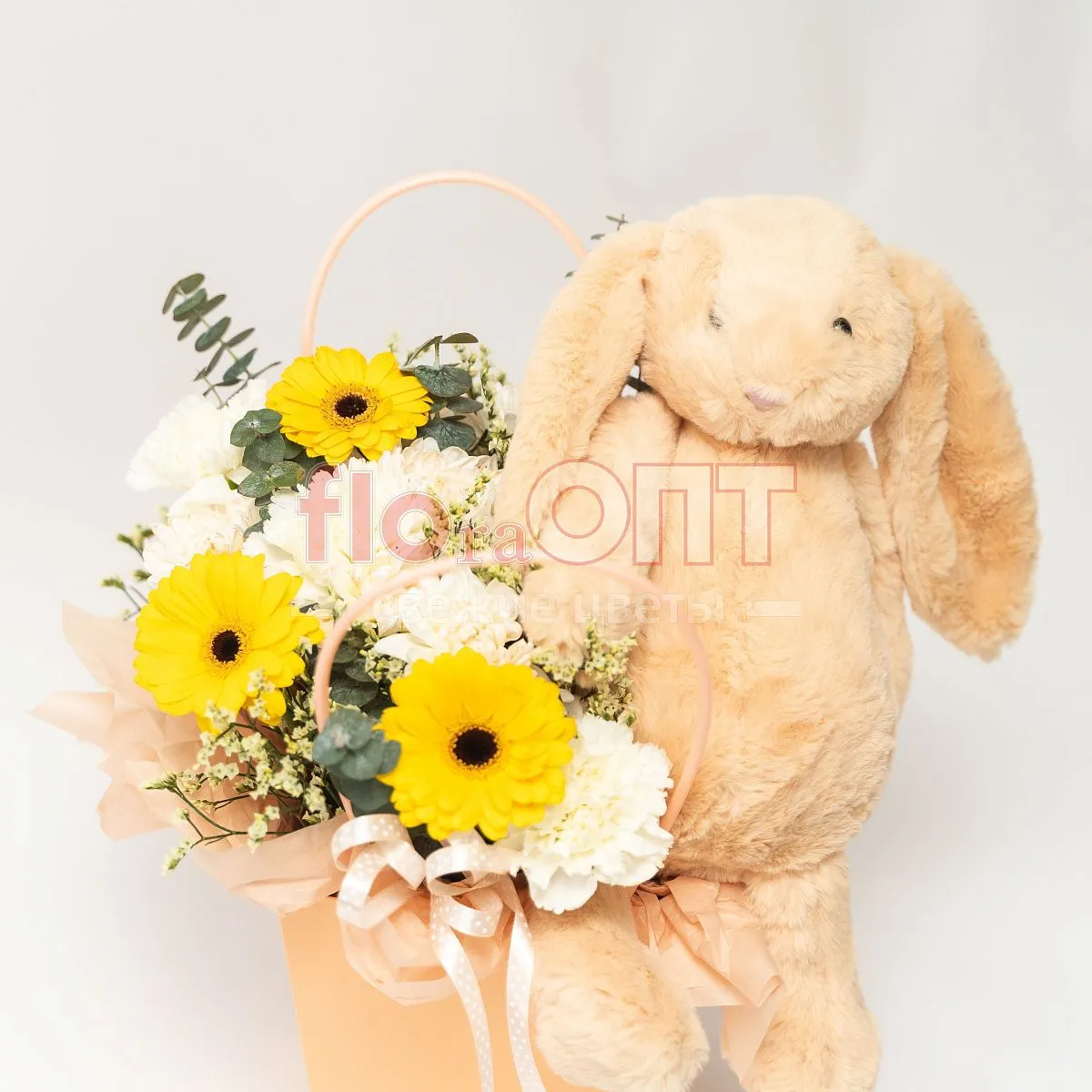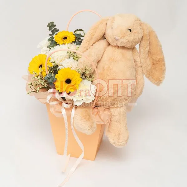 Цветы в составе Гвоздика Одиночная, Гербера, Лимониум Натуральный (Роял), Оазис , Эвкалипт Де Люкс, Декор 600 руб, Мягкая игрушка 1200 руб, Хризантема Кустовая , Расходный материал, Лента текстиль 100 руб, ✓ Все цветы в наличии