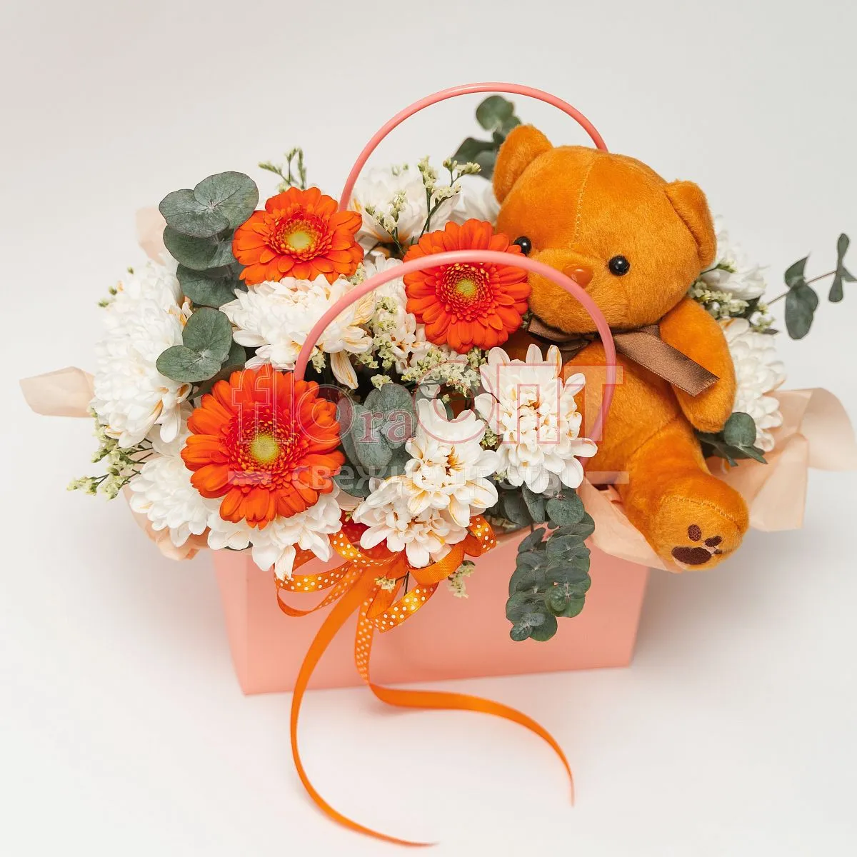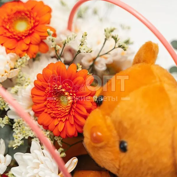 Цветы в составе Гербера, Лимониум Натуральный (Роял), Оазис , Эвкалипт Де Люкс, Декор 600 руб, Мягкая игрушка 1000 руб, Хризантема Кустовая , Бумага Тишью, Расходный материал, Лента текстиль 100 руб, ✓ Все цветы в наличии
