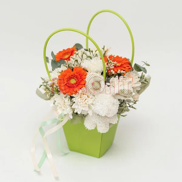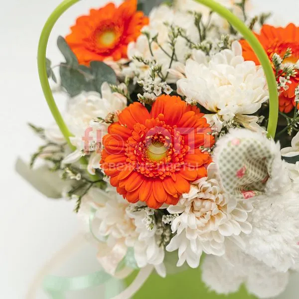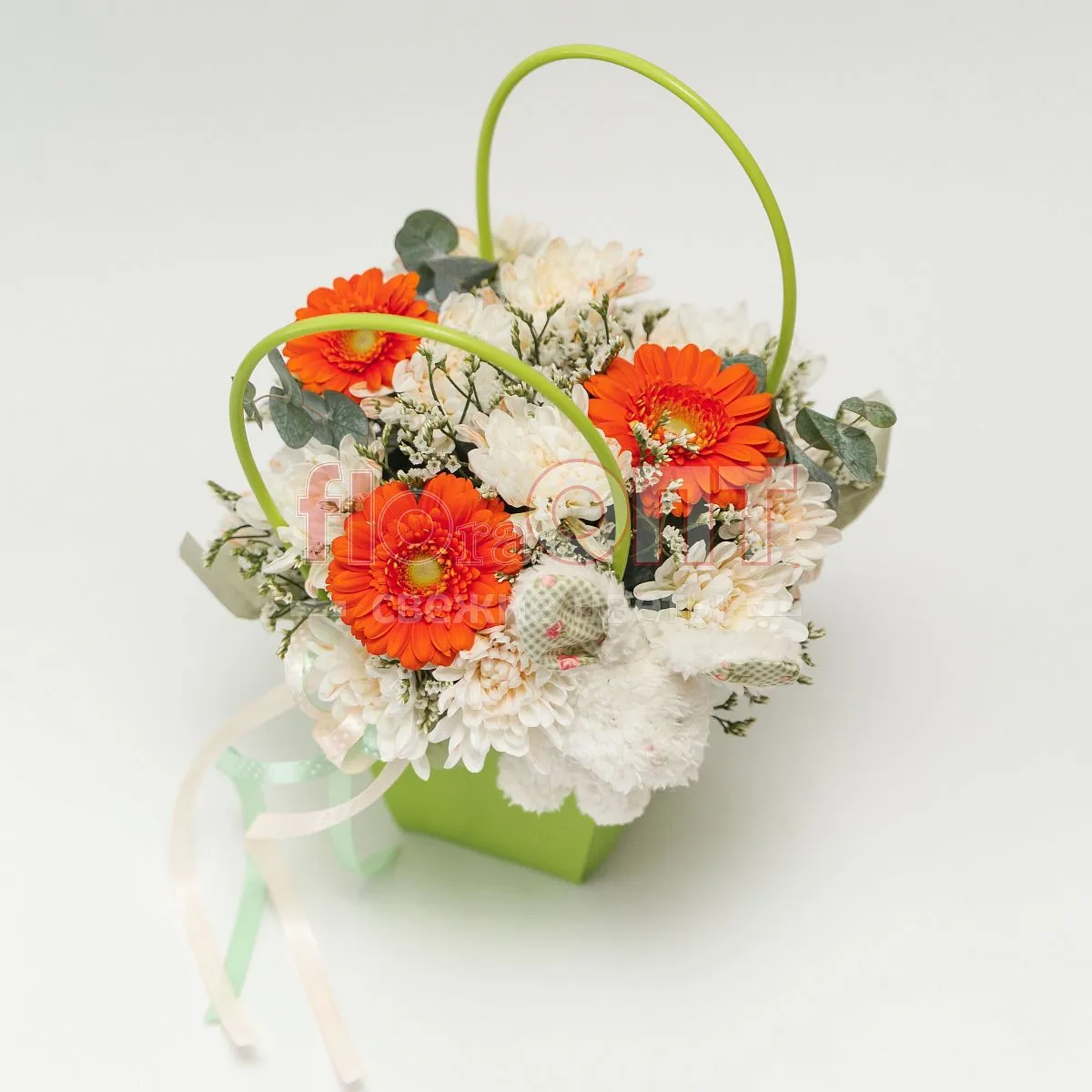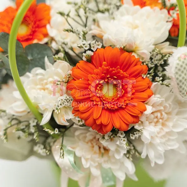 Цветы в составе Гербера, Лимониум Натуральный (Роял), Оазис , Эвкалипт Де Люкс, Декор 600 руб, Мягкая игрушка 500 руб, Хризантема Кустовая , Бумага Тишью, Расходный материал, Лента текстиль 100 руб, ✓ Все цветы в наличии