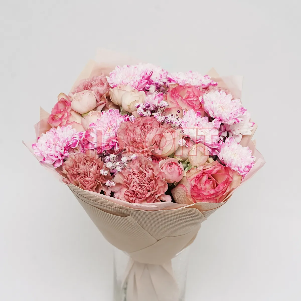 Возможна незначительная замена элементов композиции. Если какого-то цветка или оттенка, как на фотографии, не окажется в салонах, то флорист предложит вам варианты и пришлёт фото на выбор в WhasApp.