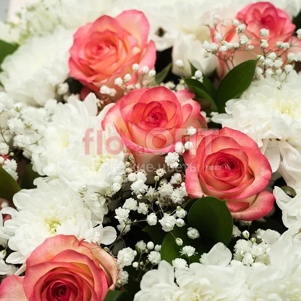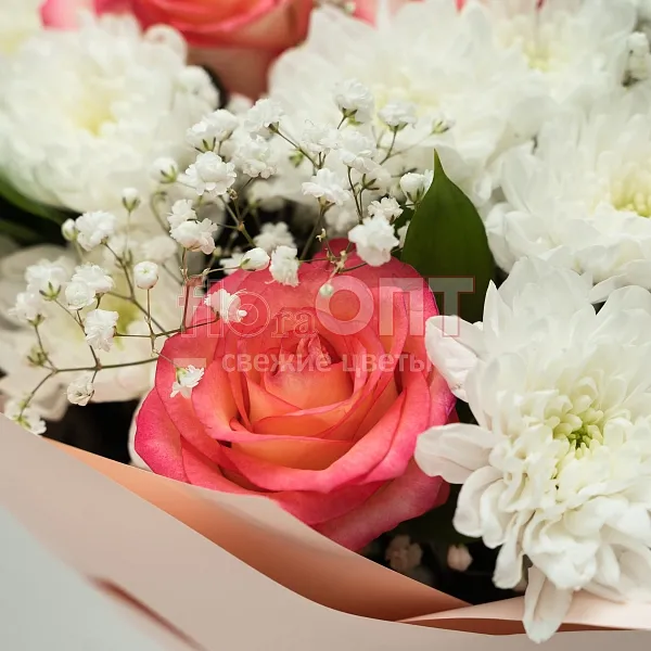 Цветы в составе Гипсофила, Лента пластиковая 30 руб, Пленка 250,руб, Рускус Голландия , Роза Россия 50 см, Хризантема Кустовая , Расходный материал, ✓ Все цветы в наличии