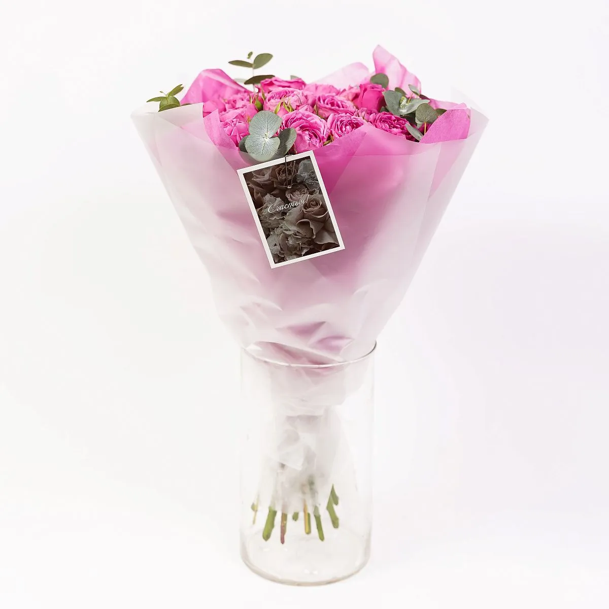 Цветы в составе Пленка 170 руб, Эвкалипт Де Люкс, Открытка 50 руб, Роза Пионовидная 50 см, Бумага Тишью, Расходный материал, Лента текстиль 100 руб, ✓ Все цветы в наличии