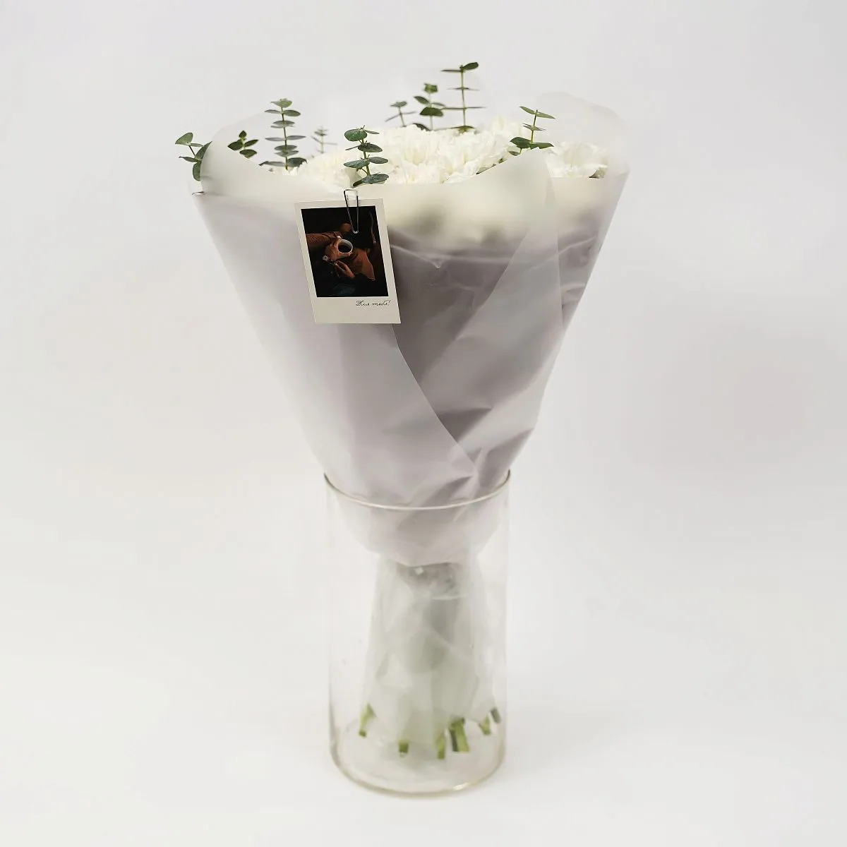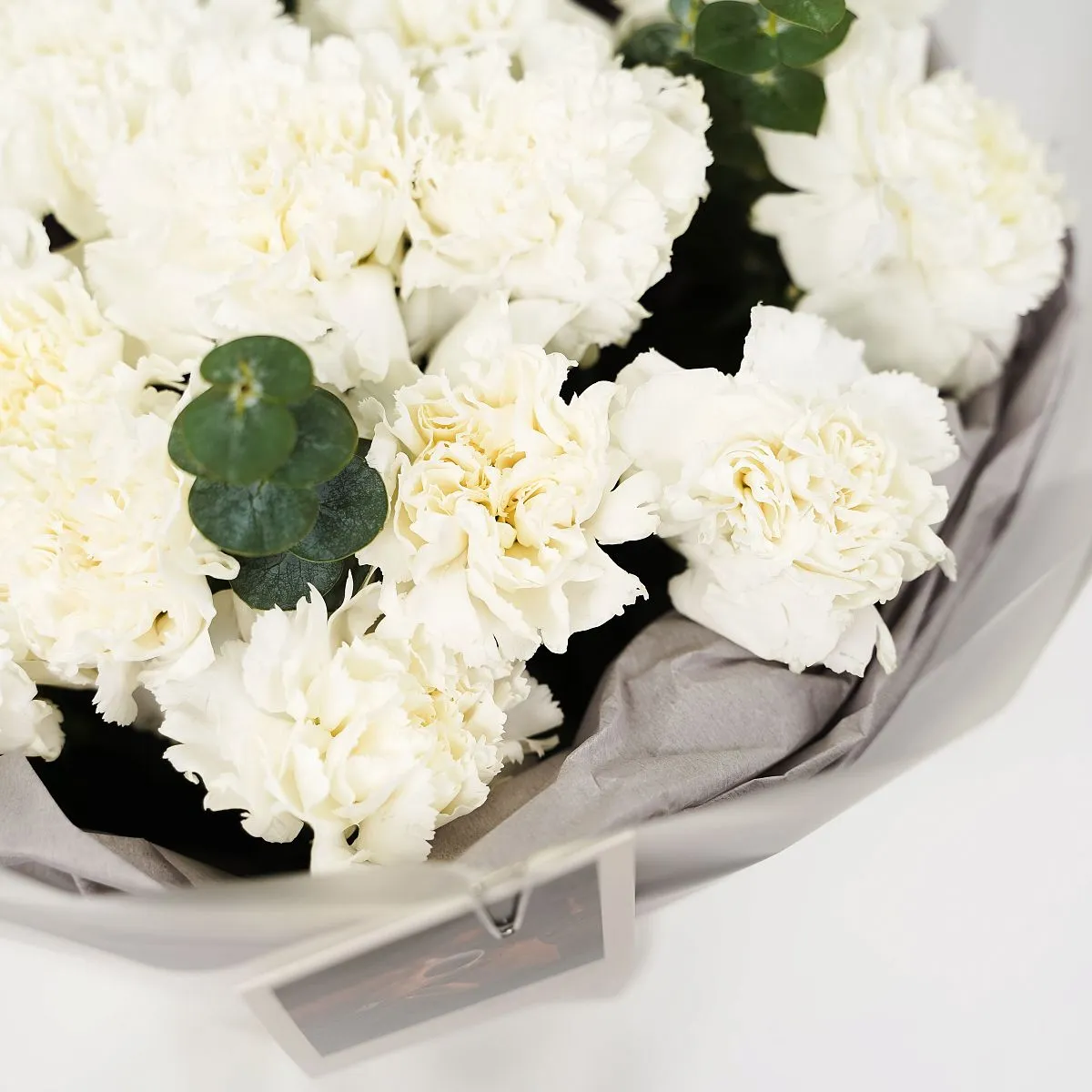 Цветы в составе Лента текстиль 100 руб, Пленка 170 руб, Эвкалипт Де Люкс, Открытка 50 руб, Гвоздика Экстра , Бумага Тишью, Расходный материал, ✓ Все цветы в наличии