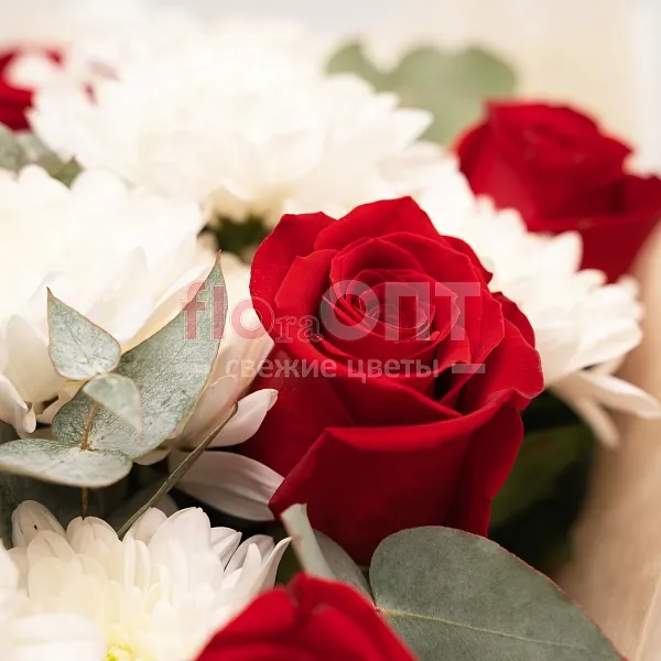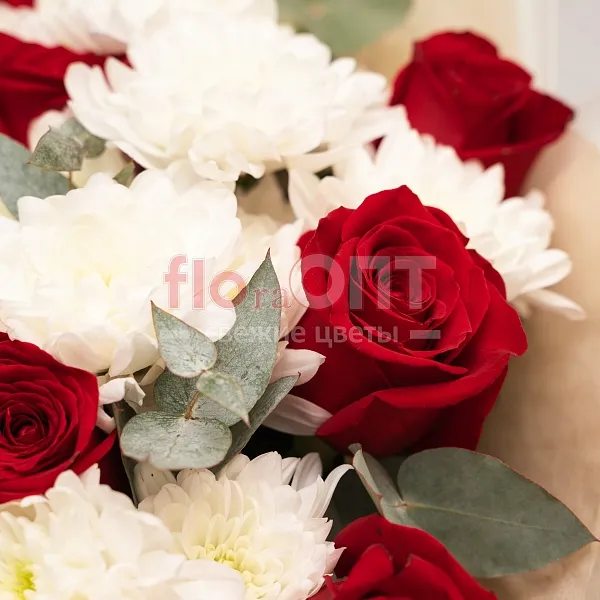 Цветы в составе Рафия , Роза Форевер 50 см, Эвкалипт Де Люкс, Хризантема Кустовая , Бумага Тишью, Фоамиран, Расходный материал, ✓ Все цветы в наличии