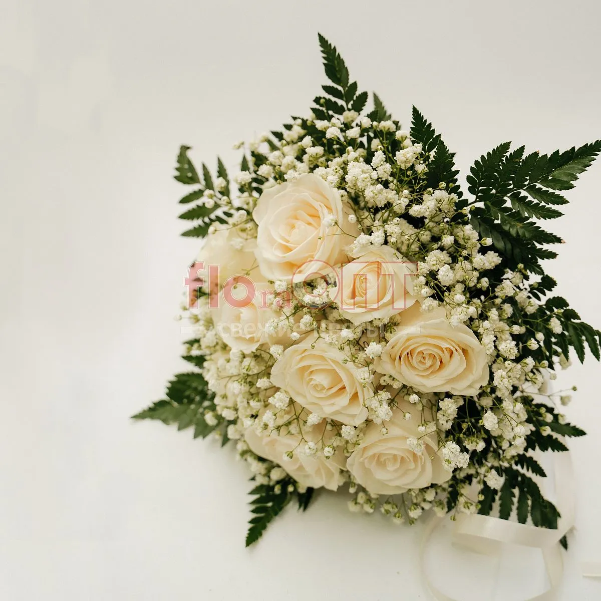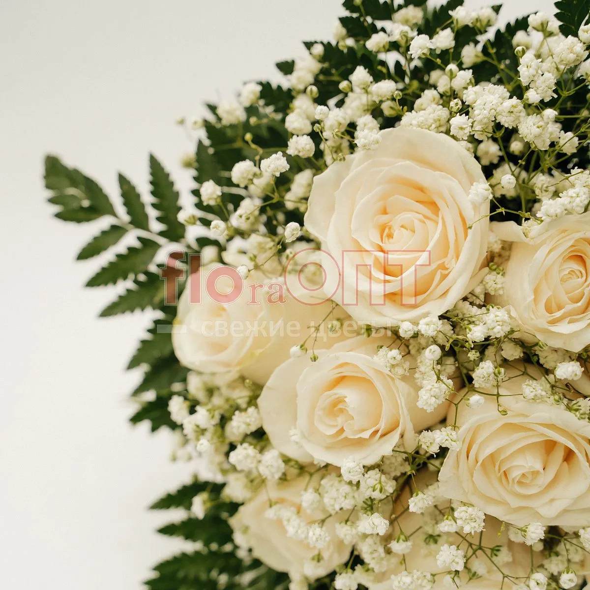 Цветы в составе Галаклипса, Гипсофила, Изготовление 150 руб, Лента текстиль 80 руб, Папоротник, Роза Микс 50 см, Расходный материал, ✓ Все цветы в наличии
