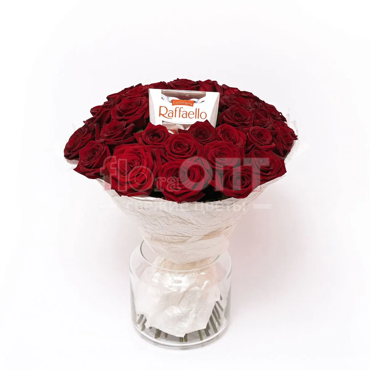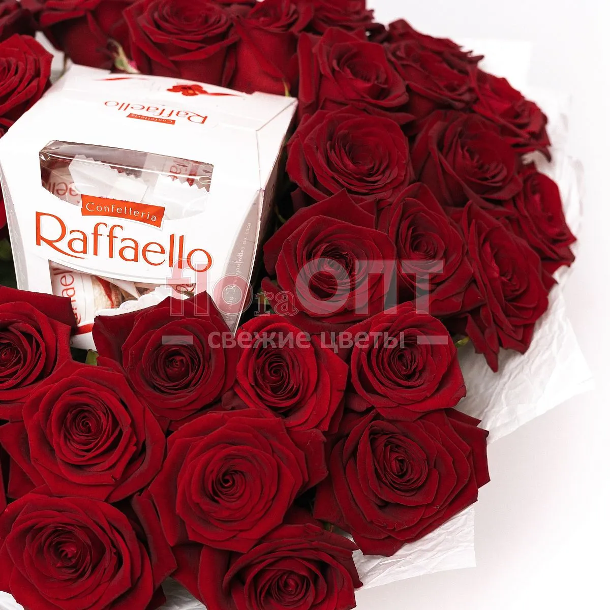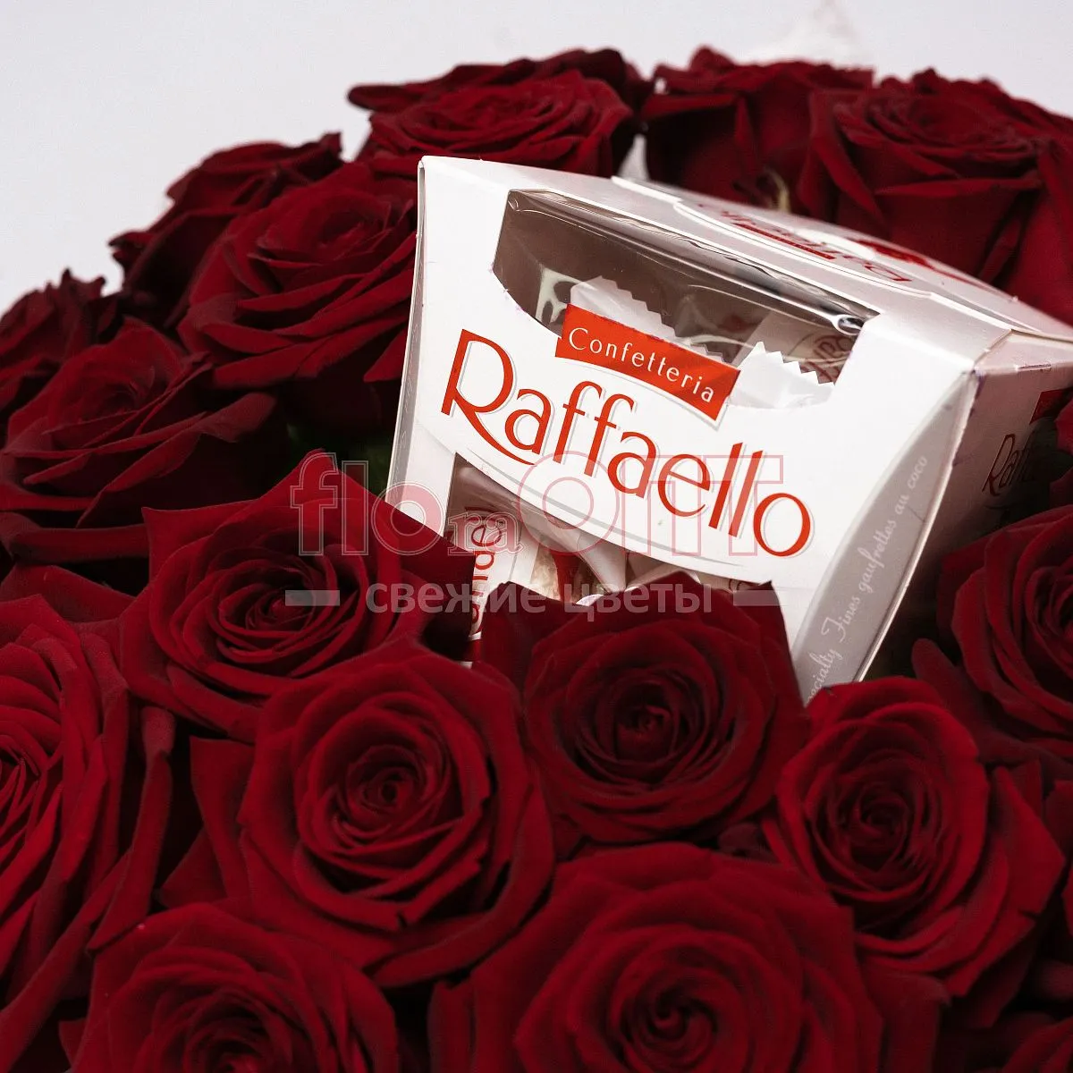 Букет № 444 с красными розами и конфетами Raffaello — фото 6