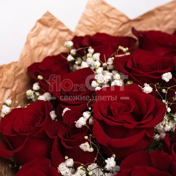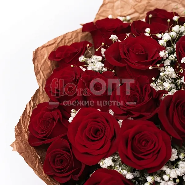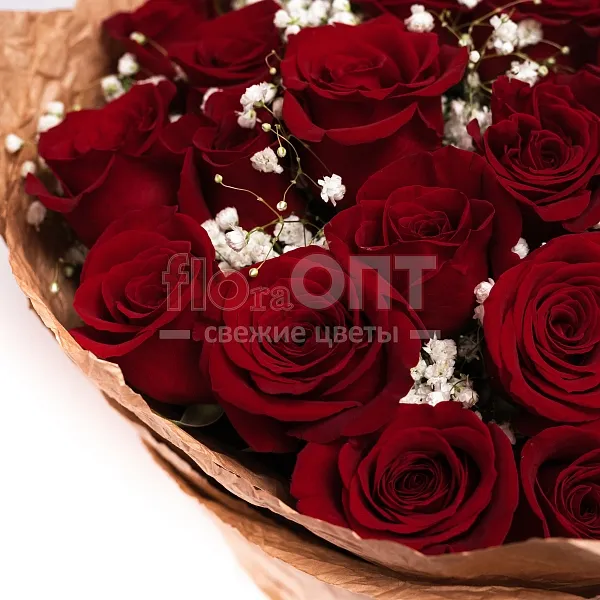 Цветы в составе Гипсофила, пусто, Роза Форевер 50 см, Крафт- бумага 240 руб, ✓ Все цветы в наличии