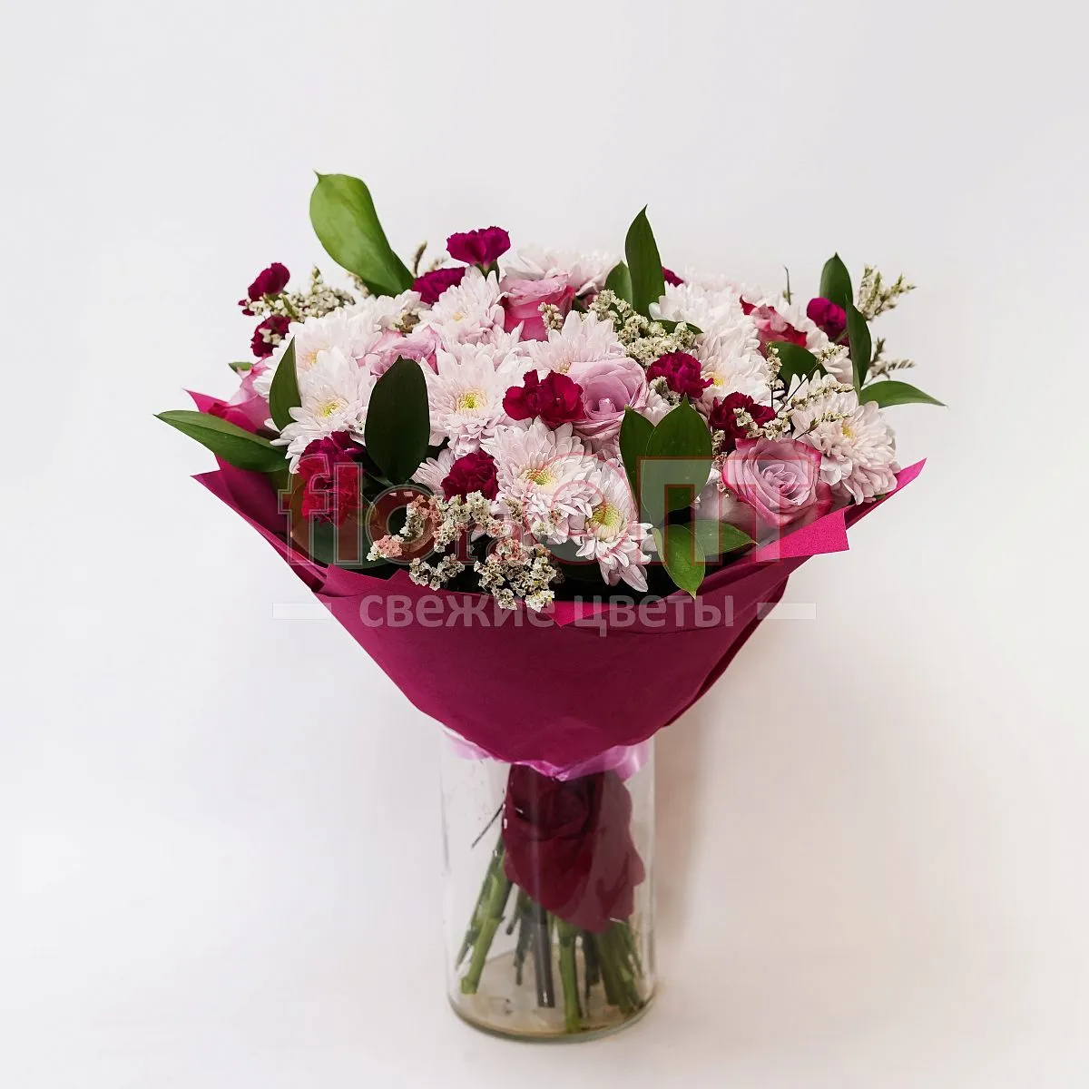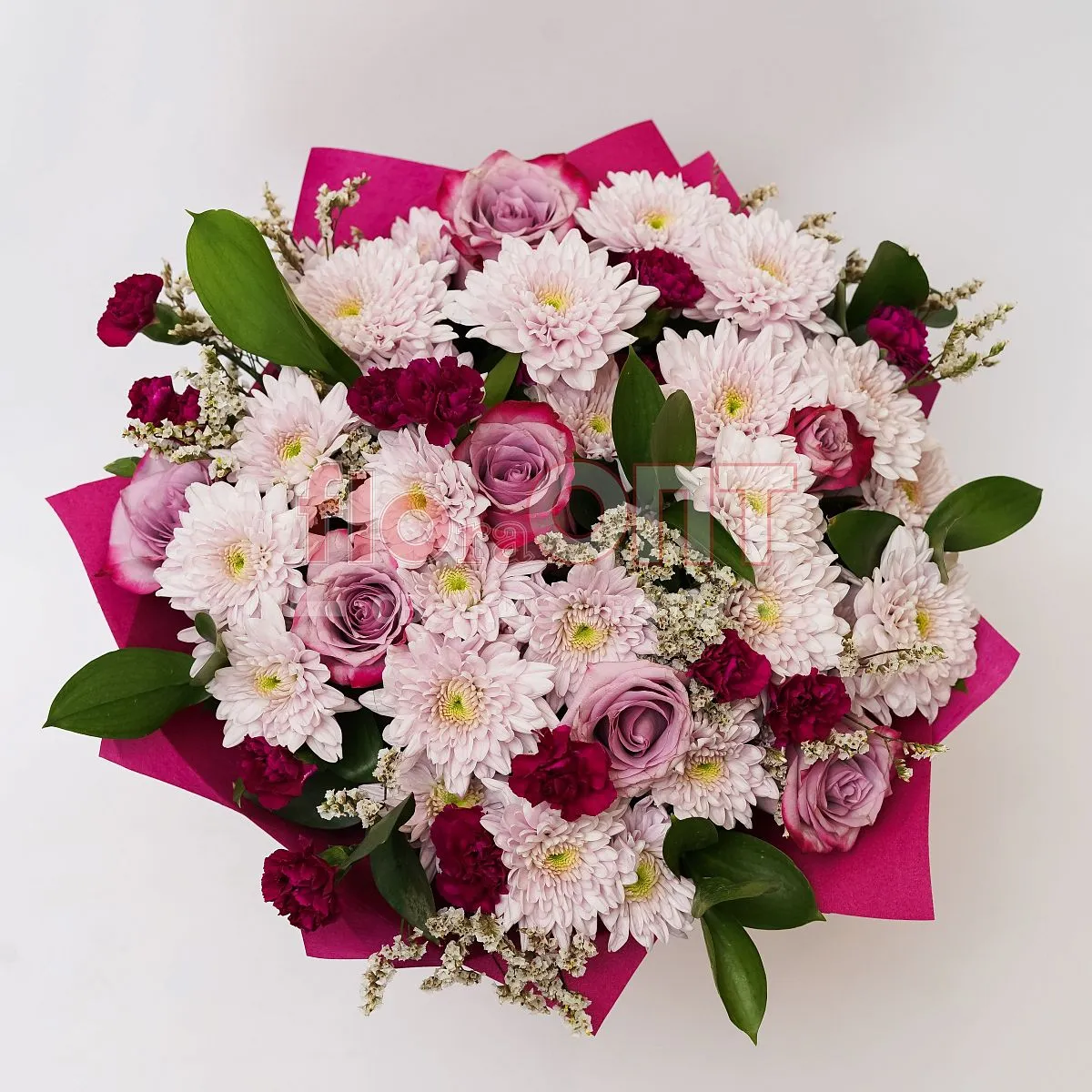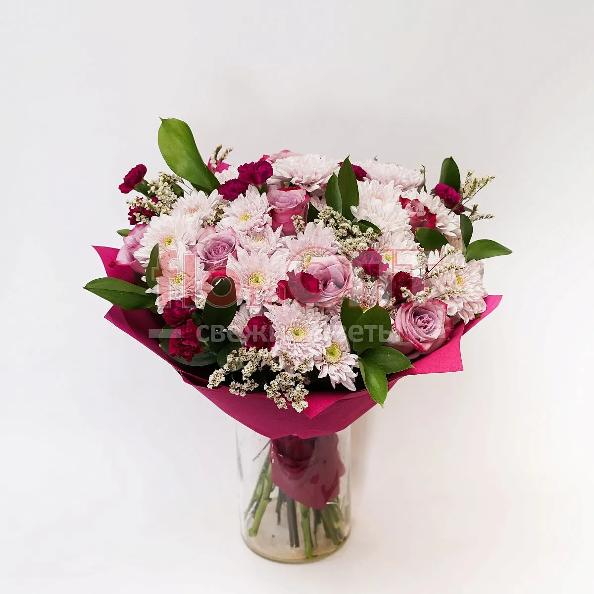 Букет № 365 с сиреневыми розами и хризантемой  — фото 7