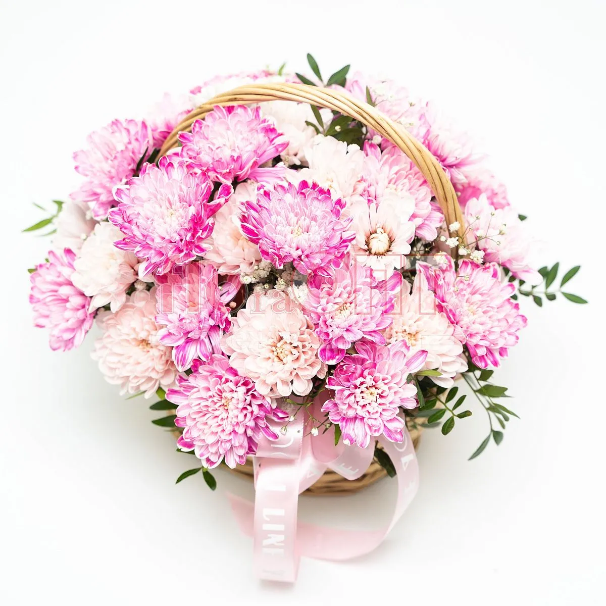 Цветы в составе Лента текстиль 80 руб, Оазис , Фисташка, Корзина 700 руб, Хризантема Кустовая Крашенная, Гипсофила Крашеная, Бумага Тишью, Расходный материал, ✓ Все цветы в наличии