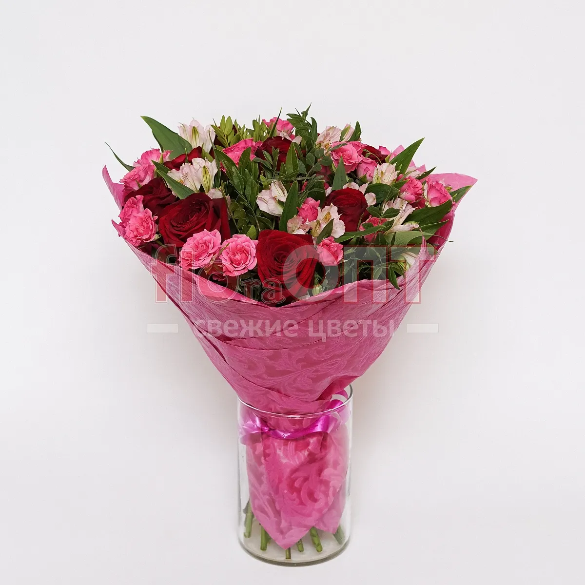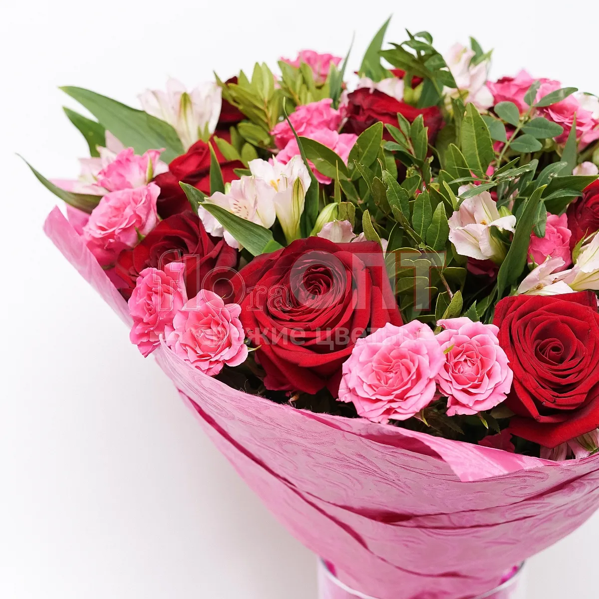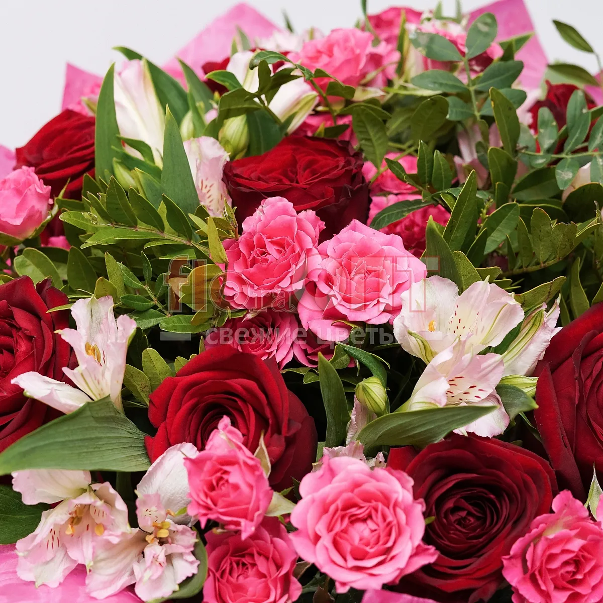 Цветы в составе Альстромерия, Лента пластиковая 30 руб, Пленка 250,руб, Роза Россия Кустовая 50 см, Роза Россия 50 см, Фисташка, Расходный материал, ✓ Все цветы в наличии