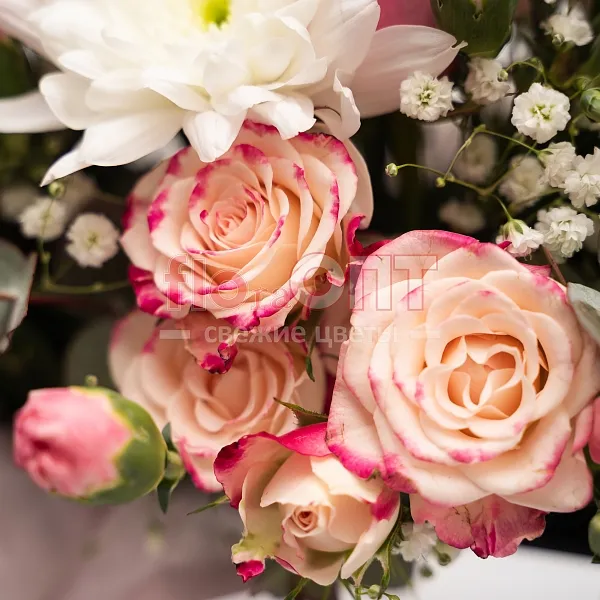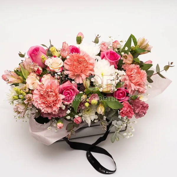 Возможна незначительная замена элементов композиции. Если какого-то цветка или оттенка, как на фотографии, не окажется в салонах, то флорист предложит вам варианты и пришлёт фото на выбор в WhasApp.