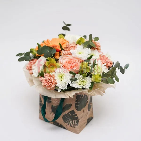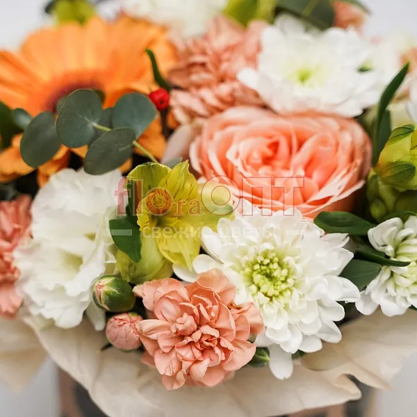 Возможна незначительная замена элементов композиции. Если какого-то цветка или оттенка, как на фотографии, не окажется в салонах, то флорист предложит вам варианты и пришлёт фото на выбор в WhasApp.