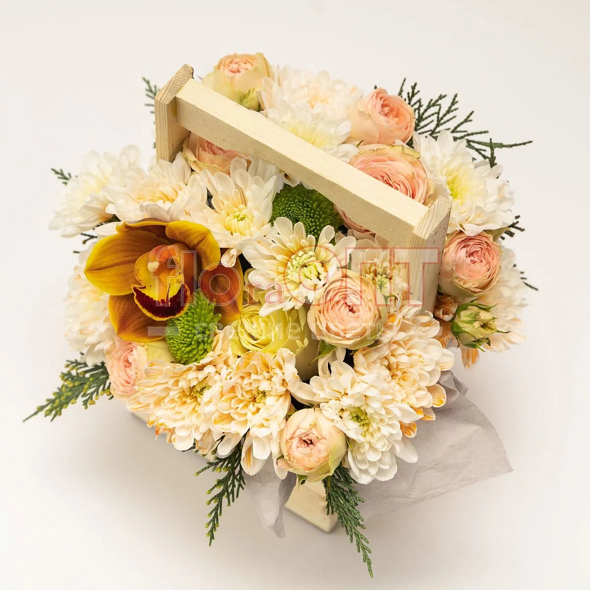 Возможна незначительная замена элементов композиции. Если какого-то цветка или оттенка, как на фотографии, не окажется в салонах, то флорист предложит вам варианты и пришлёт фото на выбор в WhasApp.