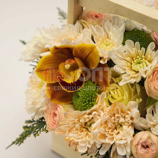 В составе этой композиции есть экзотические цветы! Мы заказываем их только специально по индивидуальному запросу, чтобы получать свежий материал, поэтому срок доставки может быть в пределах 7 дней. При подтверждении заказа флорист сообщит вам наличие в салонах и точные сроки