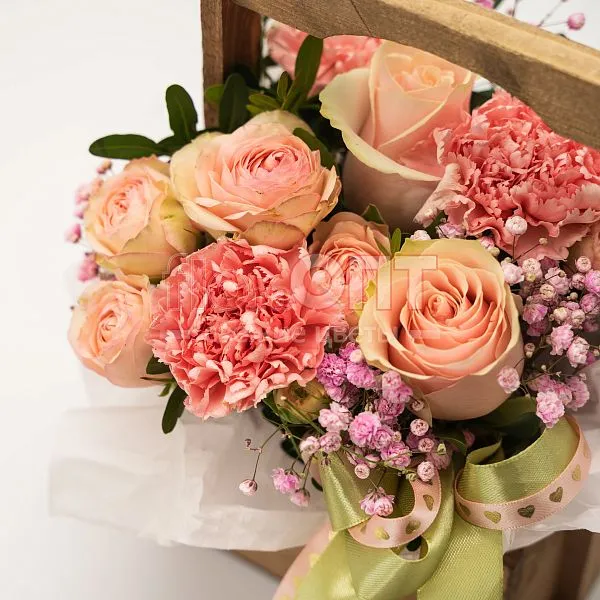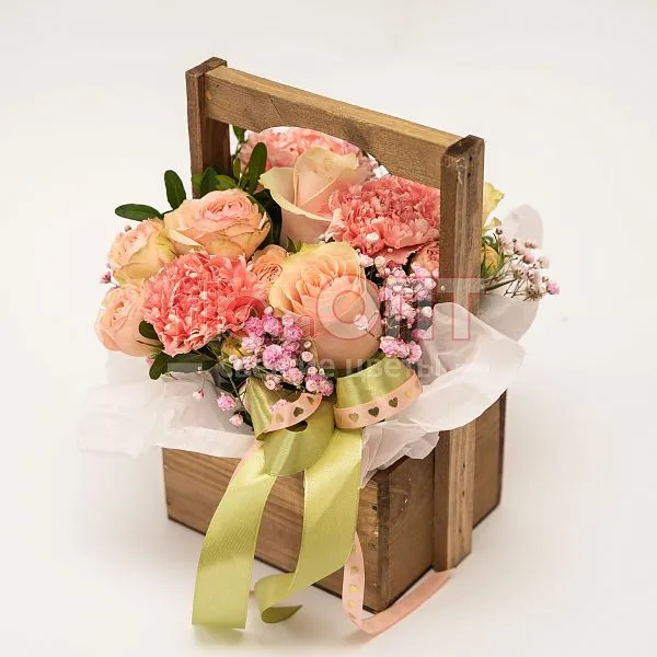 Композиция № 205 розовая в ящике