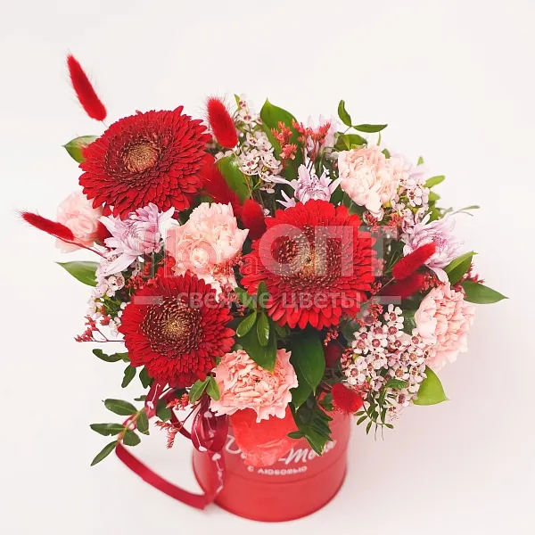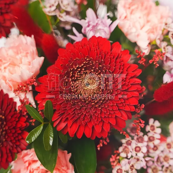 Возможна незначительная замена элементов композиции. Если какого-то цветка или оттенка, как на фотографии, не окажется в салонах, то флорист предложит вам варианты и пришлёт фото на выбор в WhasApp.