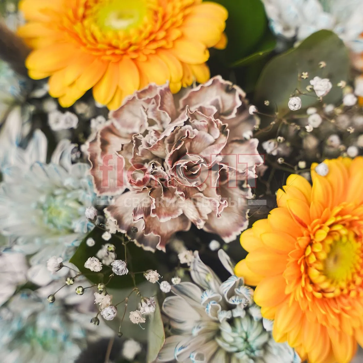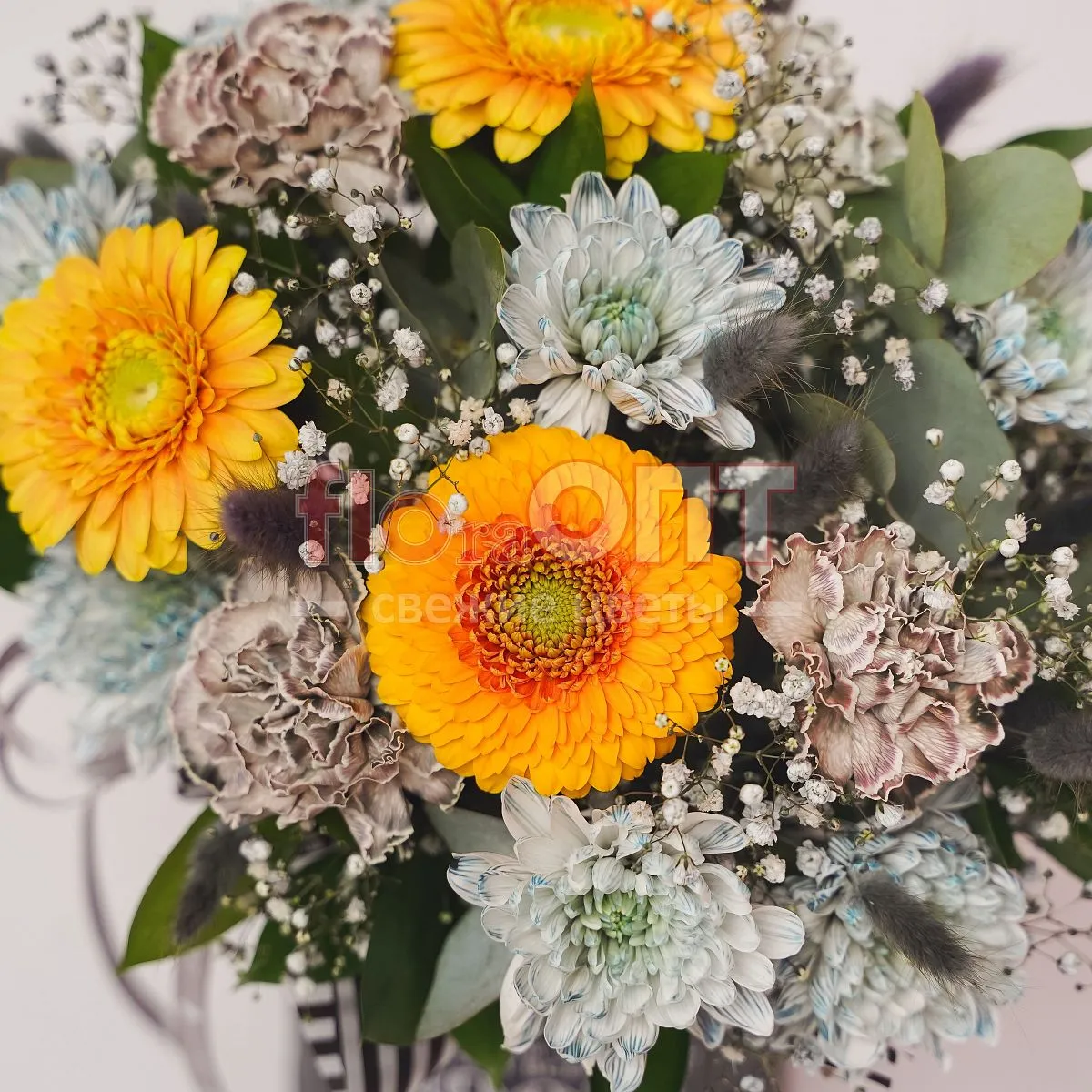 Не все цветы есть в наличии. Но можем создать букет похожего дизайна из других цветов!