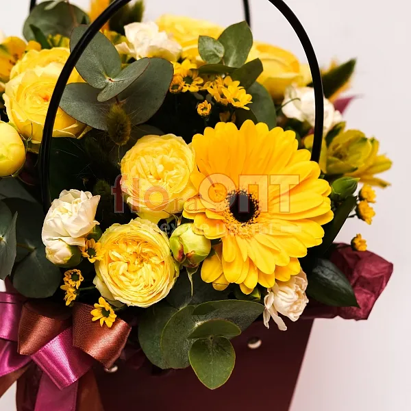 Не все цветы есть в наличии. Но можем создать букет похожего дизайна из других цветов!