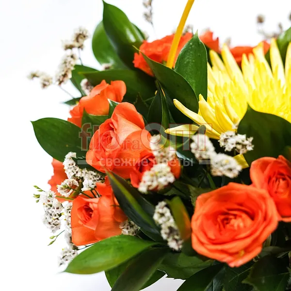 Композиция № 85 с хризантемой и кустовой розой