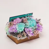 Цветы в составе Гвоздика Кустовая, Гвоздика Одиночная, Лимониум Натуральный (Роял), Оазис , Эвкалипт Де Люкс, Рускус Голландия , Декор 50 руб, Хризантема Кустовая Крашенная, Роза Россия Кустовая 40 см, Бумага Тишью, Топпер 150 руб, Расходный материал, ✓ Все цветы в наличии