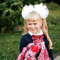 «Первый раз — в первый класс! Понесли учителю шикарный букет.»