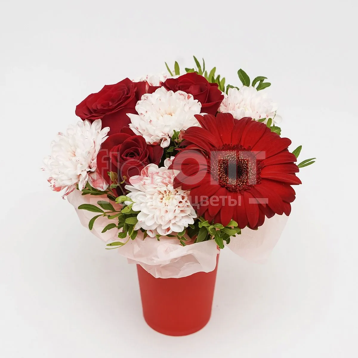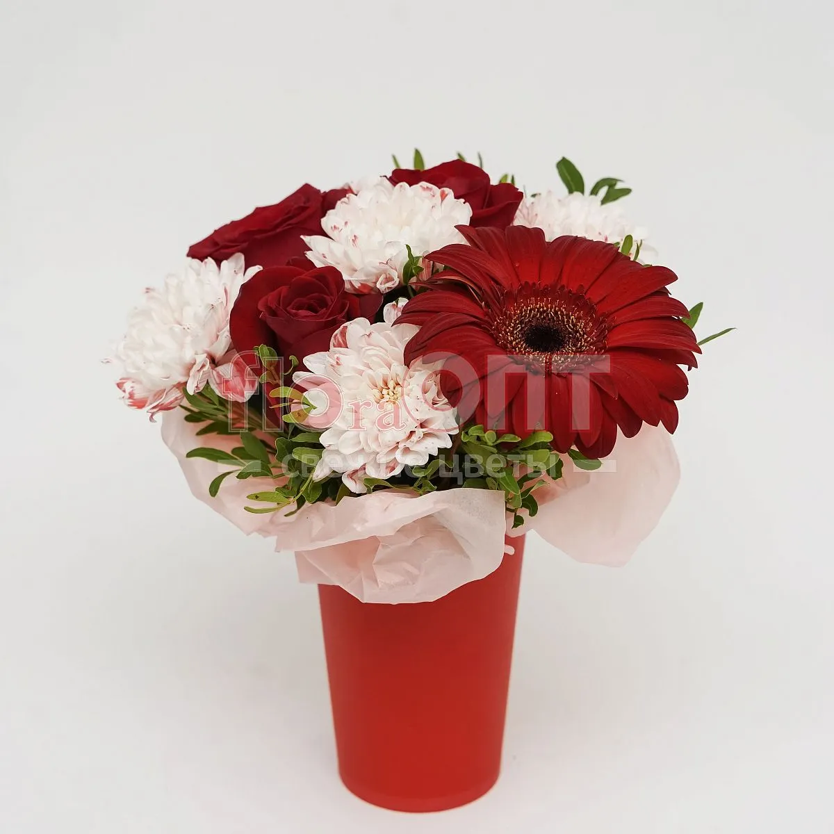 Цветочный стаканчик № 156 с красными розами