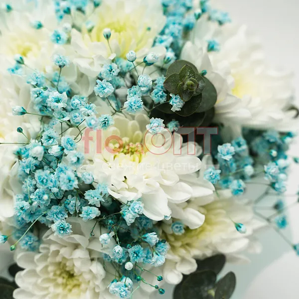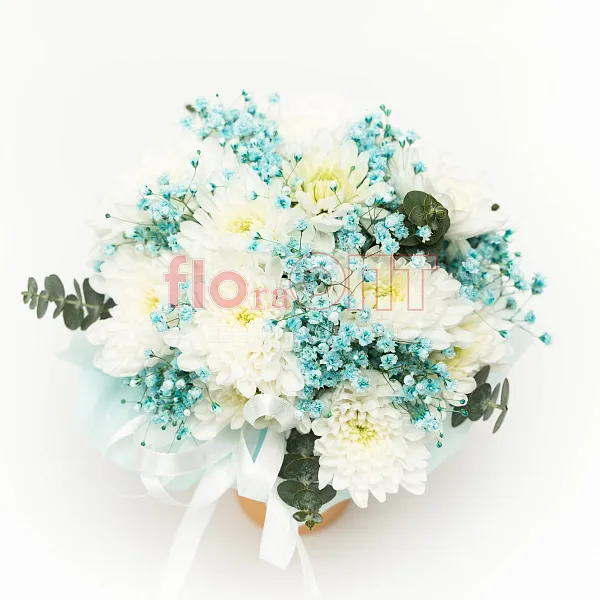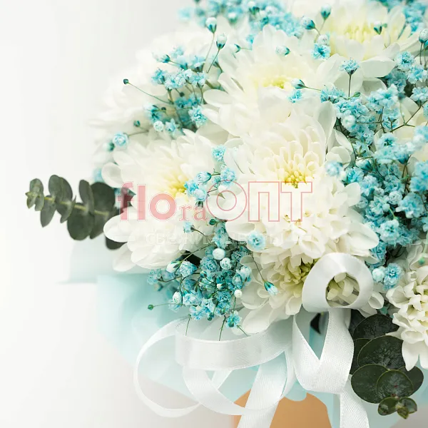 Цветочный стаканчик № 165 с хризантемой и гипсофилой