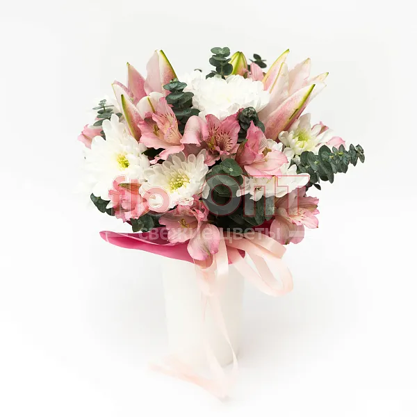 Возможна незначительная замена элементов композиции. Если какого-то цветка или оттенка, как на фотографии, не окажется в салонах, то флорист предложит вам варианты и пришлёт фото на выбор в WhasApp.
