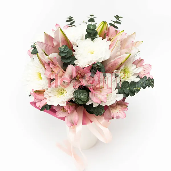 Цветочный стаканчик № 166 с лилией и хризантемой