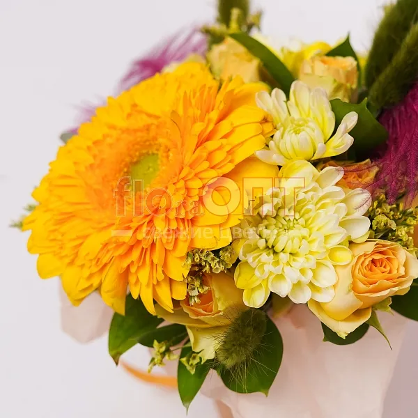 Возможна незначительная замена элементов композиции. Если какого-то цветка или оттенка, как на фотографии, не окажется в салонах, то флорист предложит вам варианты и пришлёт фото на выбор в WhasApp.