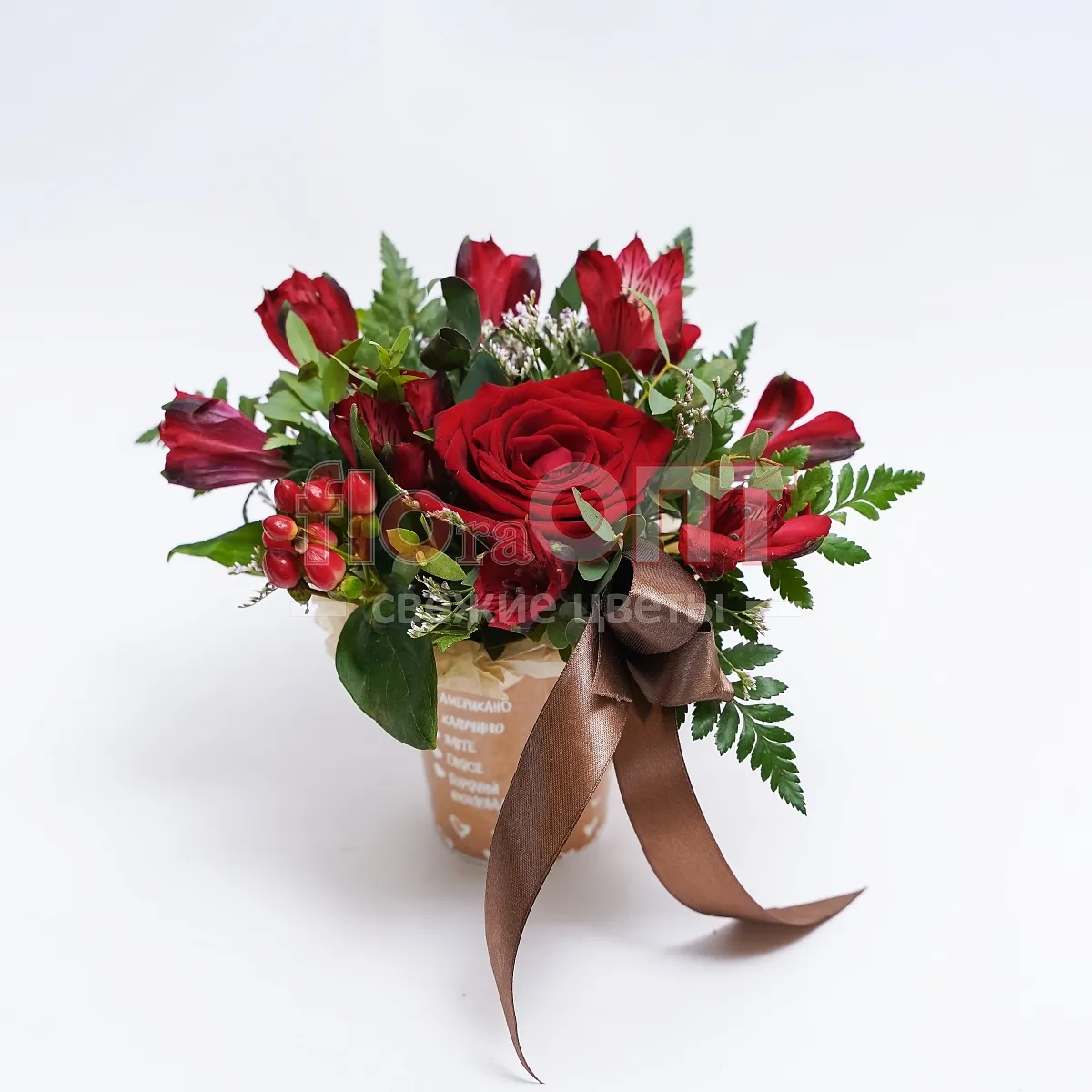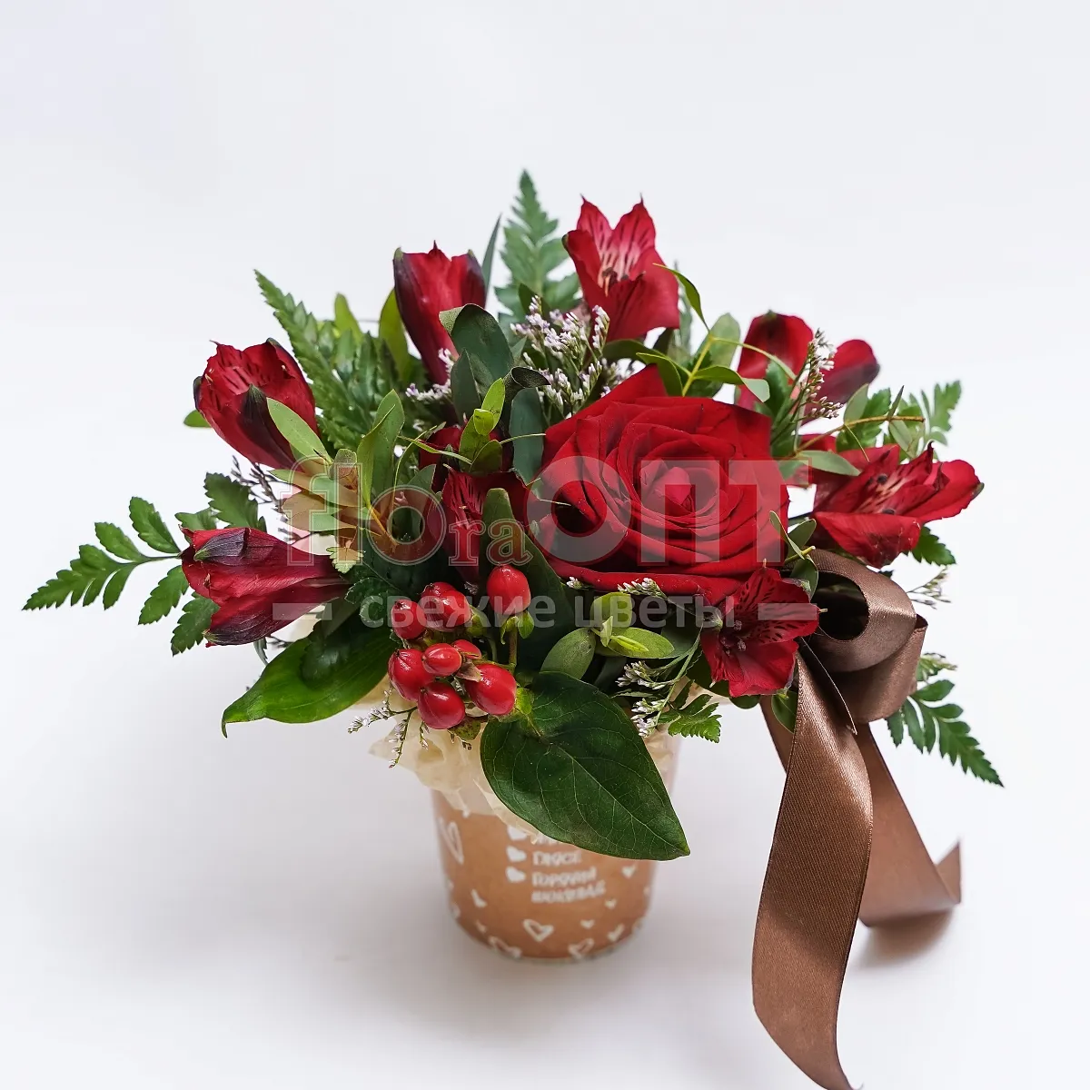 Цветочный стаканчик № 85 с альстромерией  — фото 6