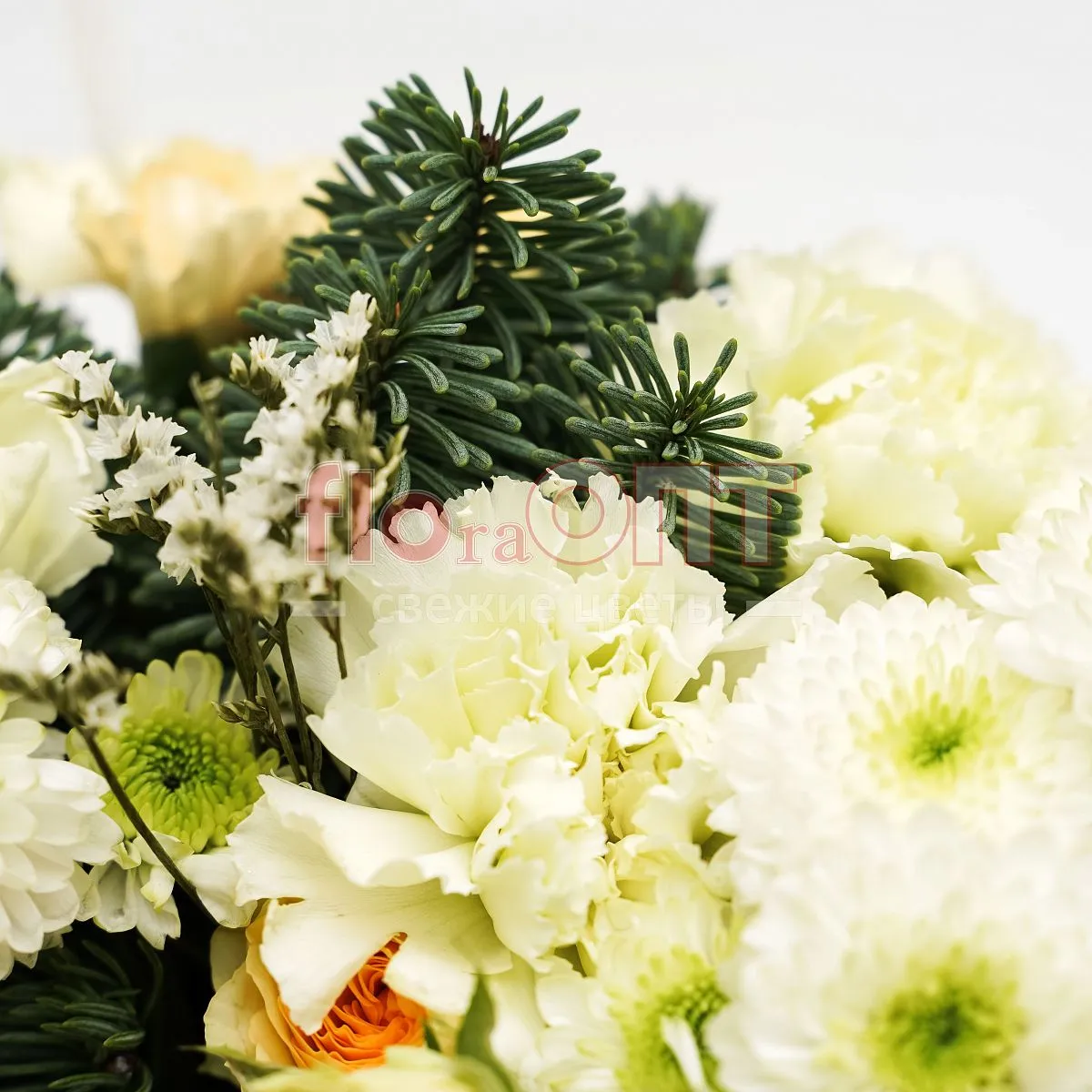 Цветы в составе Гвоздика Кустовая, Гвоздика Одиночная, Крафт- бумага 200 руб, Лапка Ели , Лента текстиль 80 руб, Оазис , Роза Эквадор Кустовая 50 см, Декор 500 руб, Хризантема Кустовая , Расходный материал, ✓ Все цветы в наличии