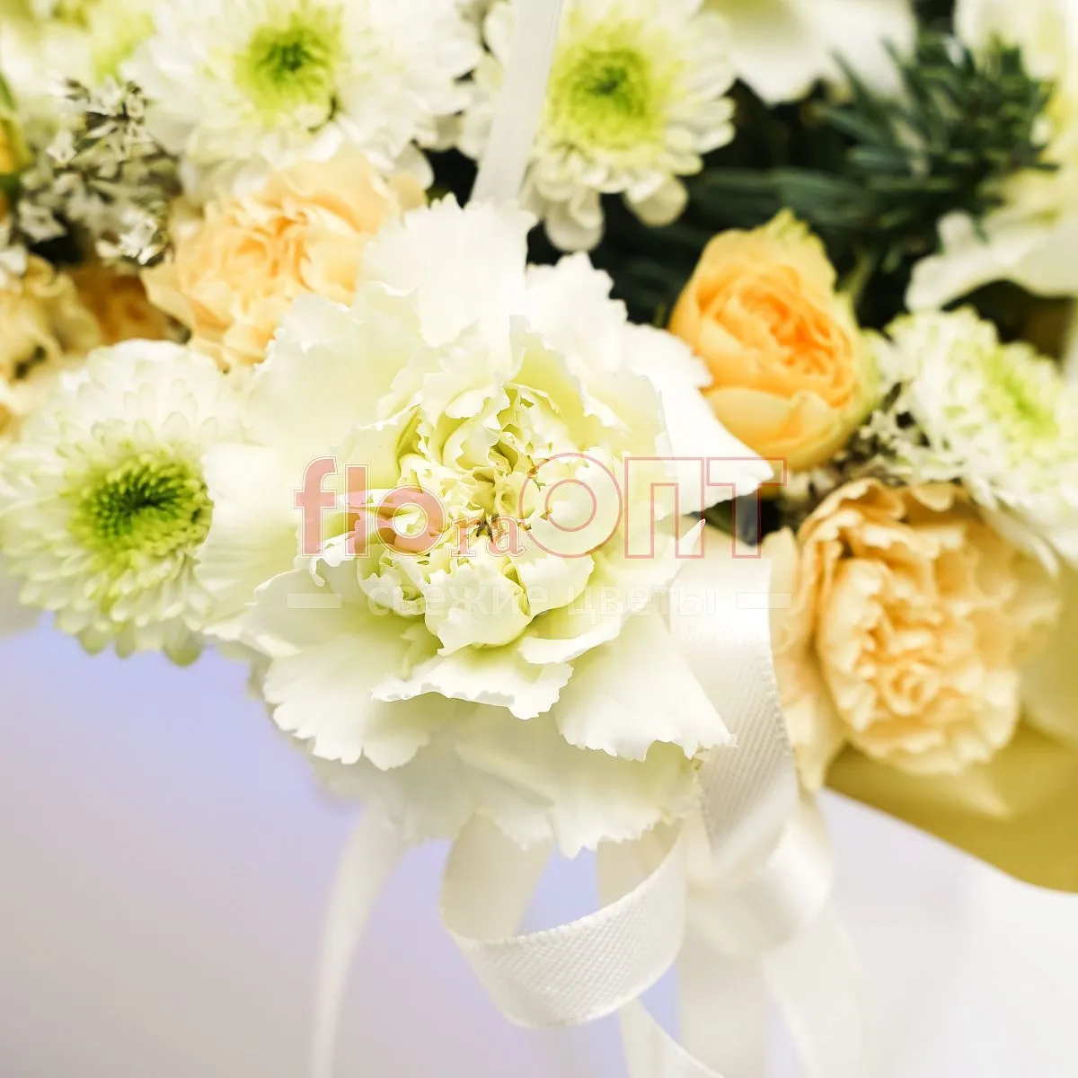 Возможна незначительная замена элементов композиции. Если какого-то цветка или оттенка, как на фотографии, не окажется в салонах, то флорист предложит вам варианты и пришлёт фото на выбор в WhasApp.