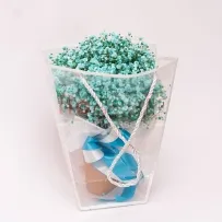 Вместе с цветами адресат получит короткую инструкцию по подрезке и пакетик с кризалом — средством для продления жизни букета.