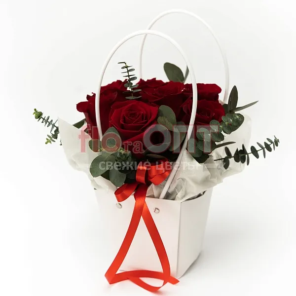 Композиция № 216 с красными розами в сумочке