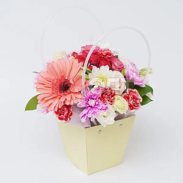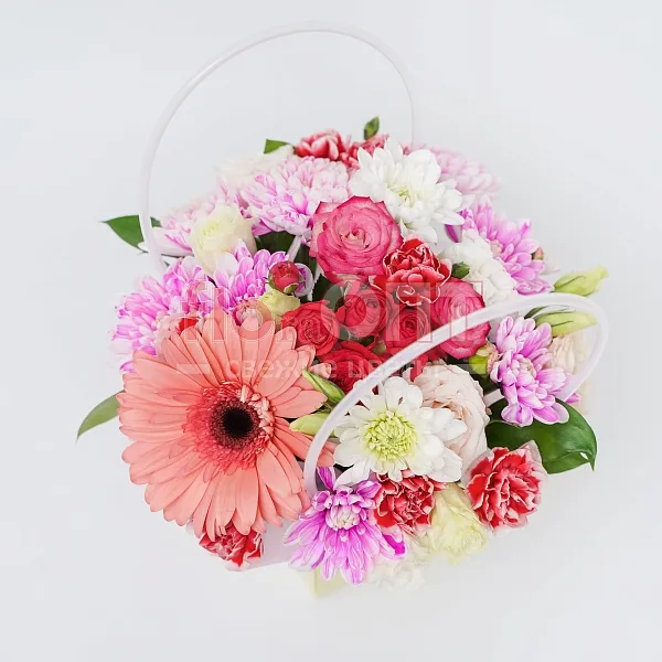 Возможна незначительная замена элементов композиции. Если какого-то цветка или оттенка, как на фотографии, не окажется в салонах, то флорист предложит вам варианты и пришлёт фото на выбор в WhasApp.