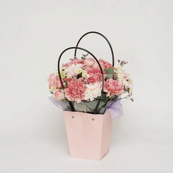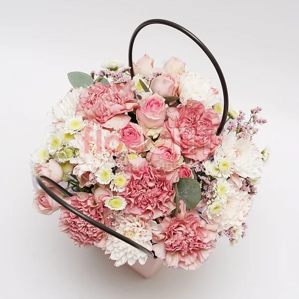 Коробка № 200 с розовой гвоздикой и хризантемой