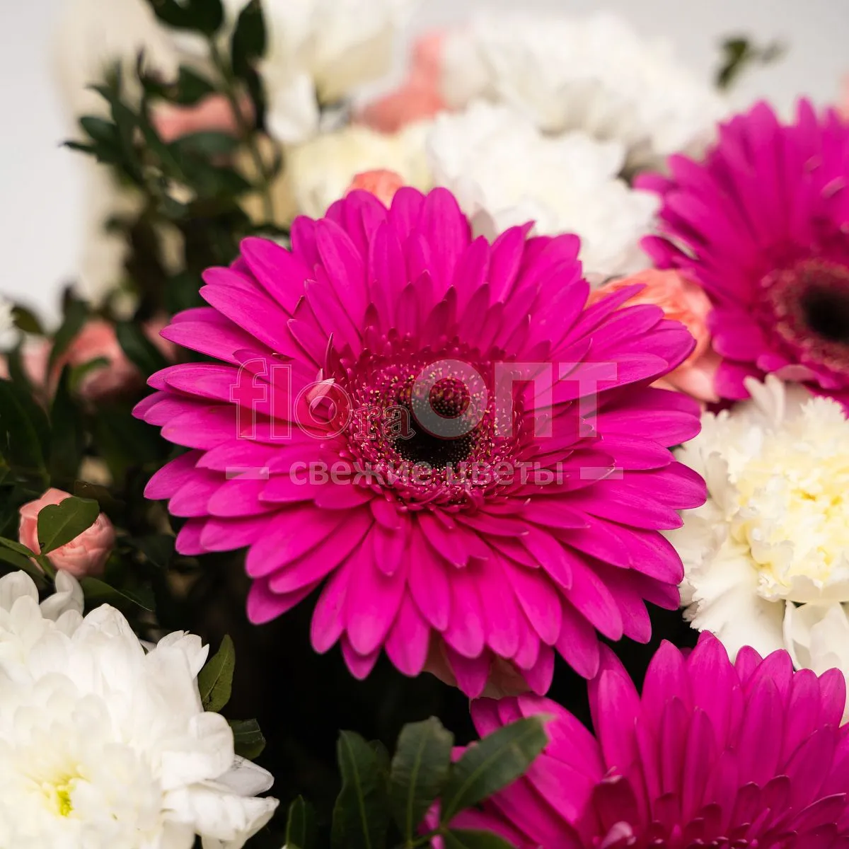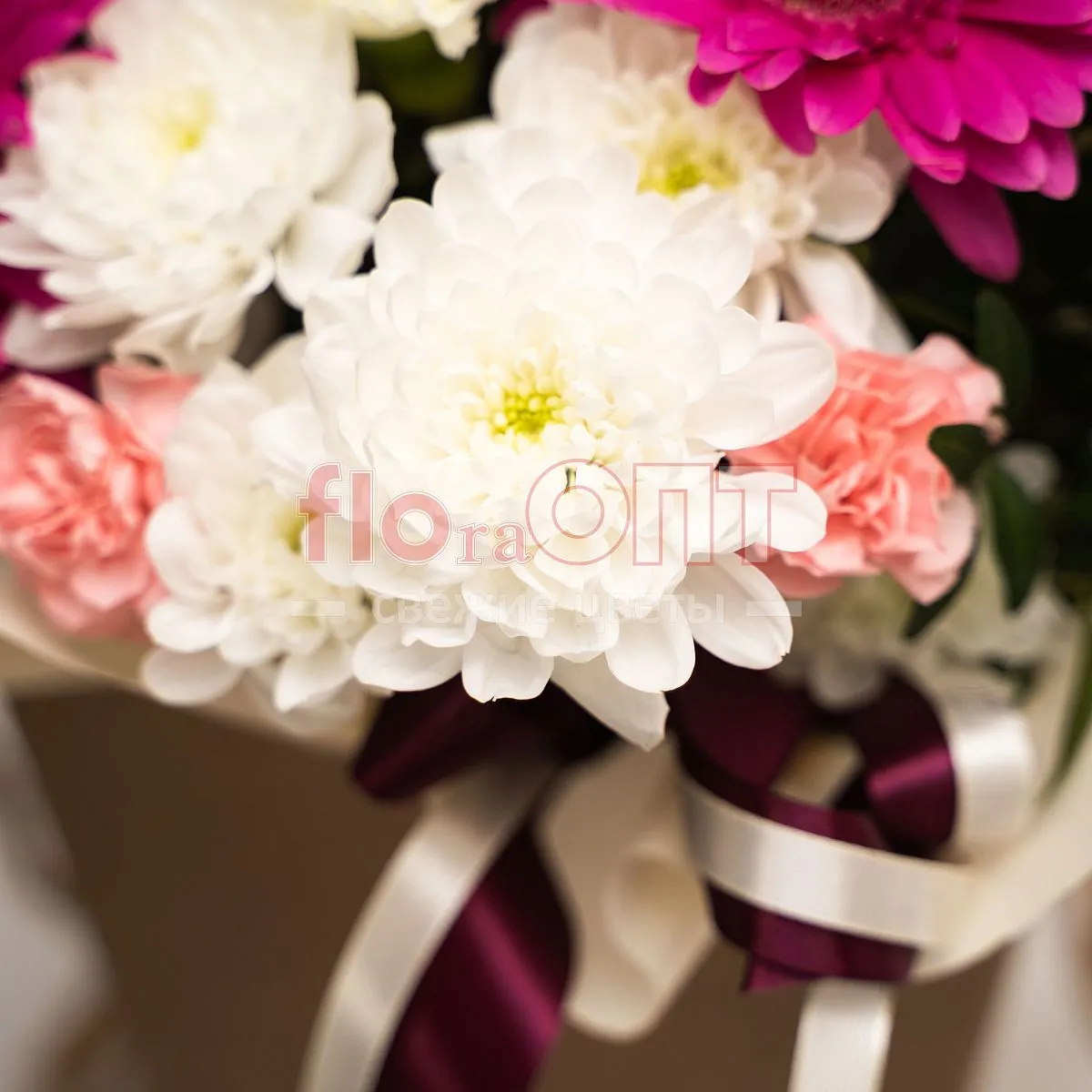 Коробка № 240 с розовыми герберами и кустовой гвоздикой  — фото 10