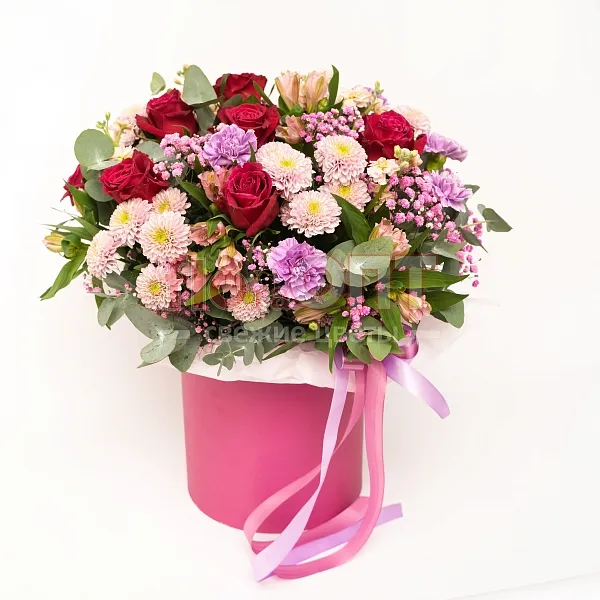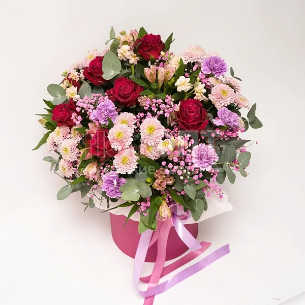 Возможна незначительная замена элементов композиции. Если какого-то цветка или оттенка, как на фотографии, не окажется в салонах, то флорист предложит вам варианты и пришлёт фото на выбор в WhasApp.