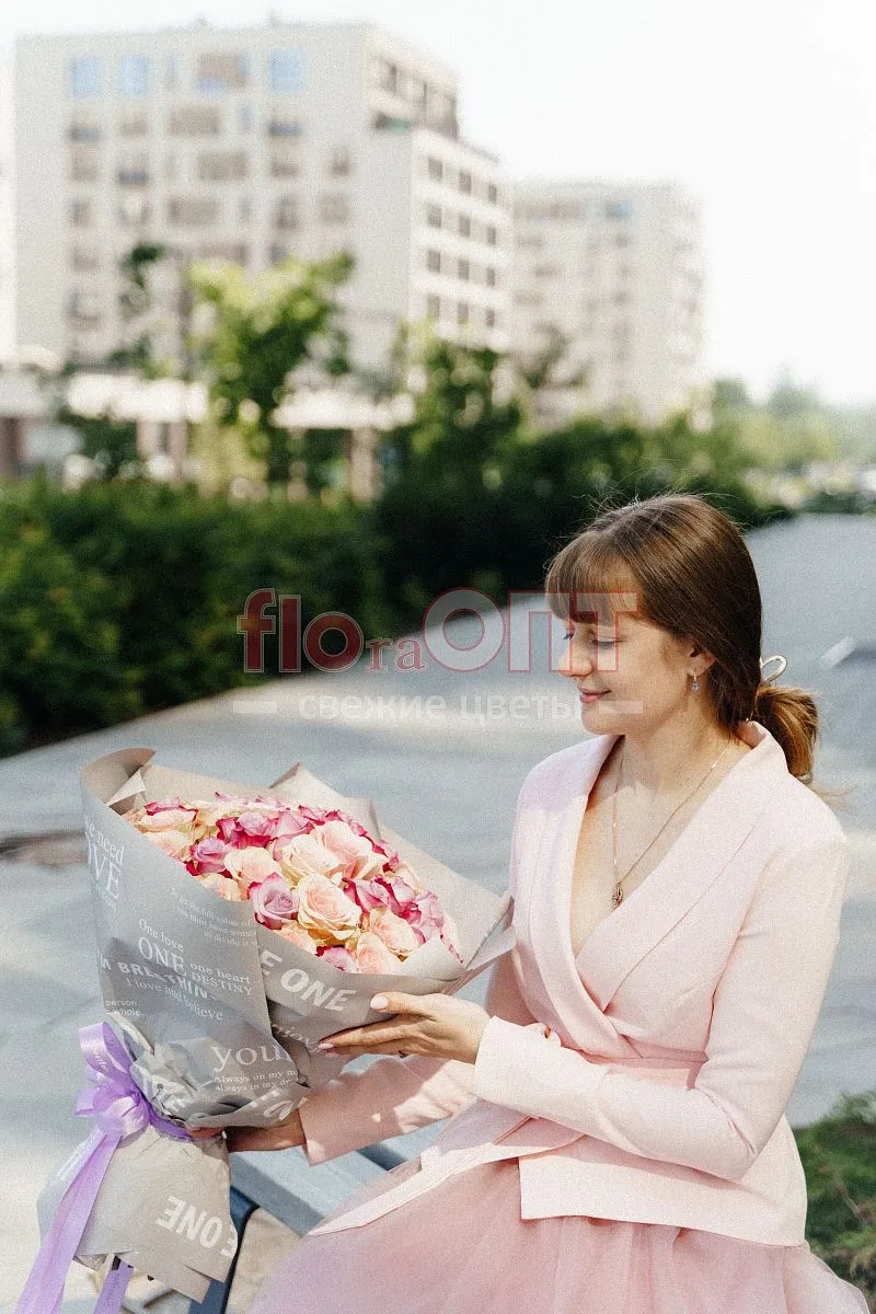 Цветы в составе Лента пластиковая 30 руб, Пленка матовая 320 руб, Роза Микс 60 см, ✓ Все цветы в наличии